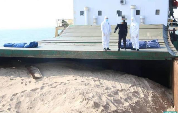 二,當(dāng)日9時(shí)許,汕頭海警局執(zhí)法艇在汕頭海門港對(duì)開海域開展 " 獵砂 " 專項(xiàng)整治行動(dòng)時(shí),發(fā)現(xiàn)一艘疑似非法運(yùn)輸海砂的船舶,執(zhí)法艇當(dāng)即前往查緝。經(jīng)查,該船舶無法提供該批海砂的合法證件,船上海砂來源不明。目前,案件正在進(jìn)一步調(diào)查處理中。